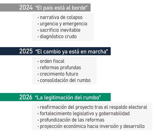 El equipo de Analítica 427 dio a conocer una nueva edición de “Datos a la Mano”, en esta oportunidad, titulado “El relato del poder. Lenguaje y clima político en las Aperturas del Congreso 2024–2026”, un estudio comparativo de los discursos pronunciados por el presidente Javier Milei en la apertura de sesiones ordinarias durante los años 2024, 2025 y 2026.